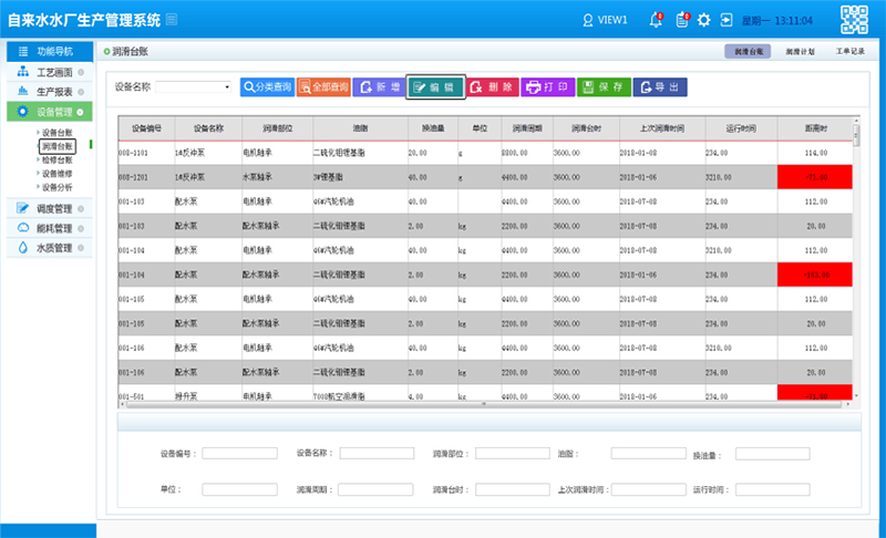 分类管理所有生产设备,统计设备运行时间,分析设备健康状况;设备台账管理,对设备的文字、卡片、图纸等各类资料进行收集、分类管理;检修保养管理,对邻近的检修、润滑计划进行提醒;支持设备维修记录、检修保养记录查询。