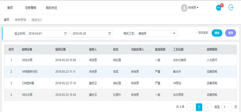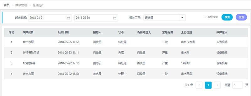 的全面掌控,对设备故障情况进行完整的记录,为日后对设备品质、供应商信用等方面提供基础的数据支持,为将来企业针对设备选型提供依据。