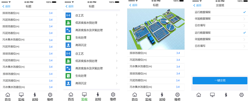 移动管控APP提供智能水厂运营管控平台的手机APP应用,可实现运营管控平台的大部分功能。